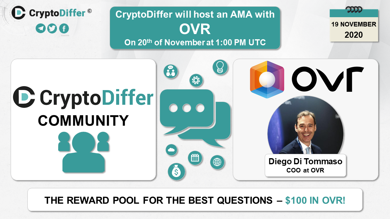 βββοΈDear community, CryptoDiffer will hold an AMA with OVR on the 20th of November at 1:00 PM UTC in the CryptoDiffer Telegram Chat!