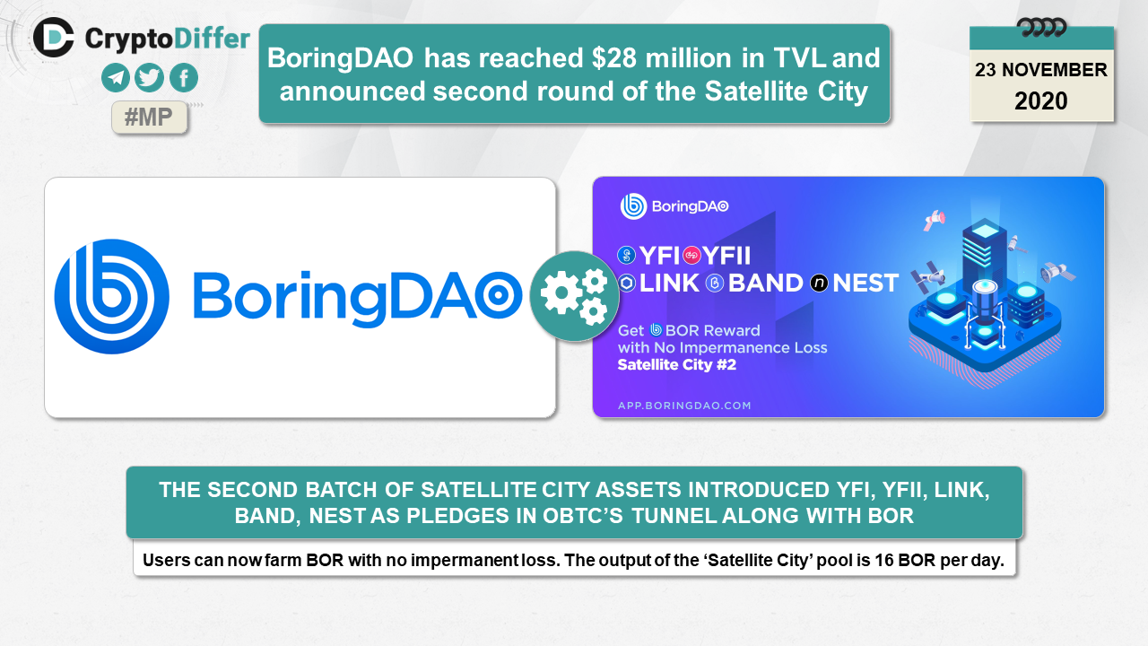 ββBoringDAO has reached $28 million in TVL and announced second round of the Satellite City