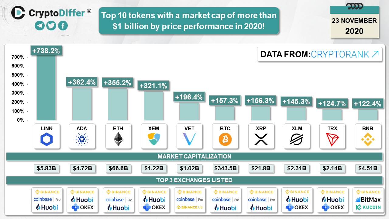 ββTop 10 tokens with a market cap of more than $1 billion by price performance in 2020!