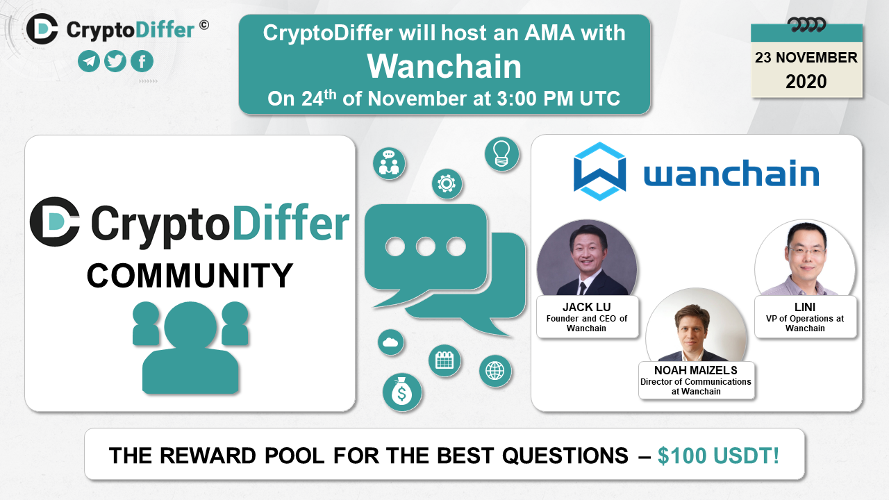 βββοΈDear community, CryptoDiffer will hold an AMA with Wanchain on the 24th of November at 3:00 PM UTC in the CryptoDiffer Telegram Chat!