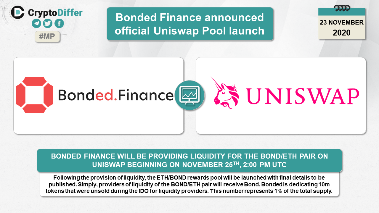 Bonded Finance will be providing liquidity for the BOND/ETH pair on Uniswap beginning on November 25th, 2:00 PM UTC.