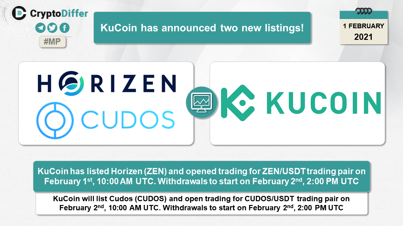 KuCoin has listed Horizen (ZEN) and opened trading for ZEN/USDT trading pair on February 1st, 10:00 AM UTC. Withdrawals to start on February 2nd, 2:00 PM UTC.