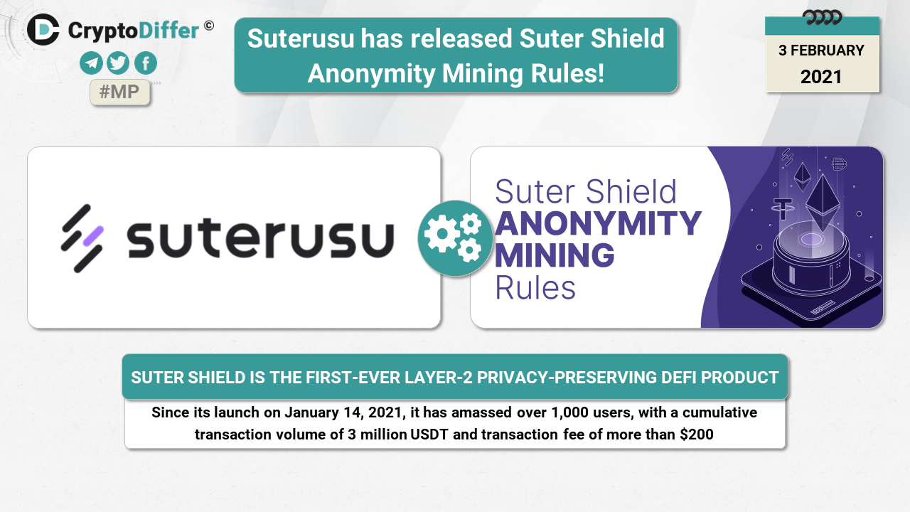 Suter Shield is the first-ever Layer-2 privacy-preserving DeFi product. Since its launch on January 14, 2021, it has amassed over 1,000 users, with a cumulative transaction volume of 3 million USD.
