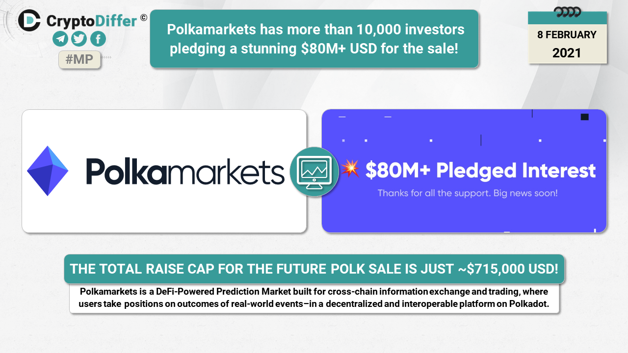 Polkamarkets is a DeFi-Powered Prediction Market built for cross-chain information exchange and trading, where users take positions on outcomes of real-world eventsβin a decentralized and interoperable platform on Polkadot. The total raise cap for the future POLK sale is just ~$715,000 USD!