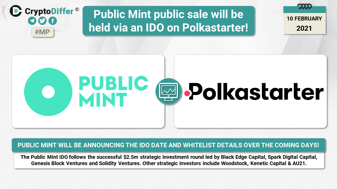 The Public Mint IDO follows the successful $2.5m strategic investment round led by Black Edge Capital, Spark Digital Capital, Genesis Block Ventures and Solidity Ventures. Other strategic investors include Woodstock, Kenetic Capital and AU21. Public Mint will be announcing the IDO date and whitelist details over the coming days!