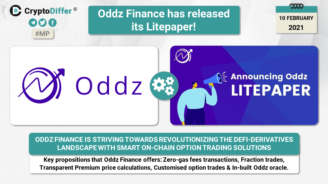 Oddz Finance is striving towards revolutionizing the DeFi-derivatives landscape with smart On-Chain option trading solutions. Key propositions that Oddz Finance offers: Zero-gas fees transactions, Fraction trades, Transparent Premium price calculations, Customised option trades & In-built Oddz oracle.