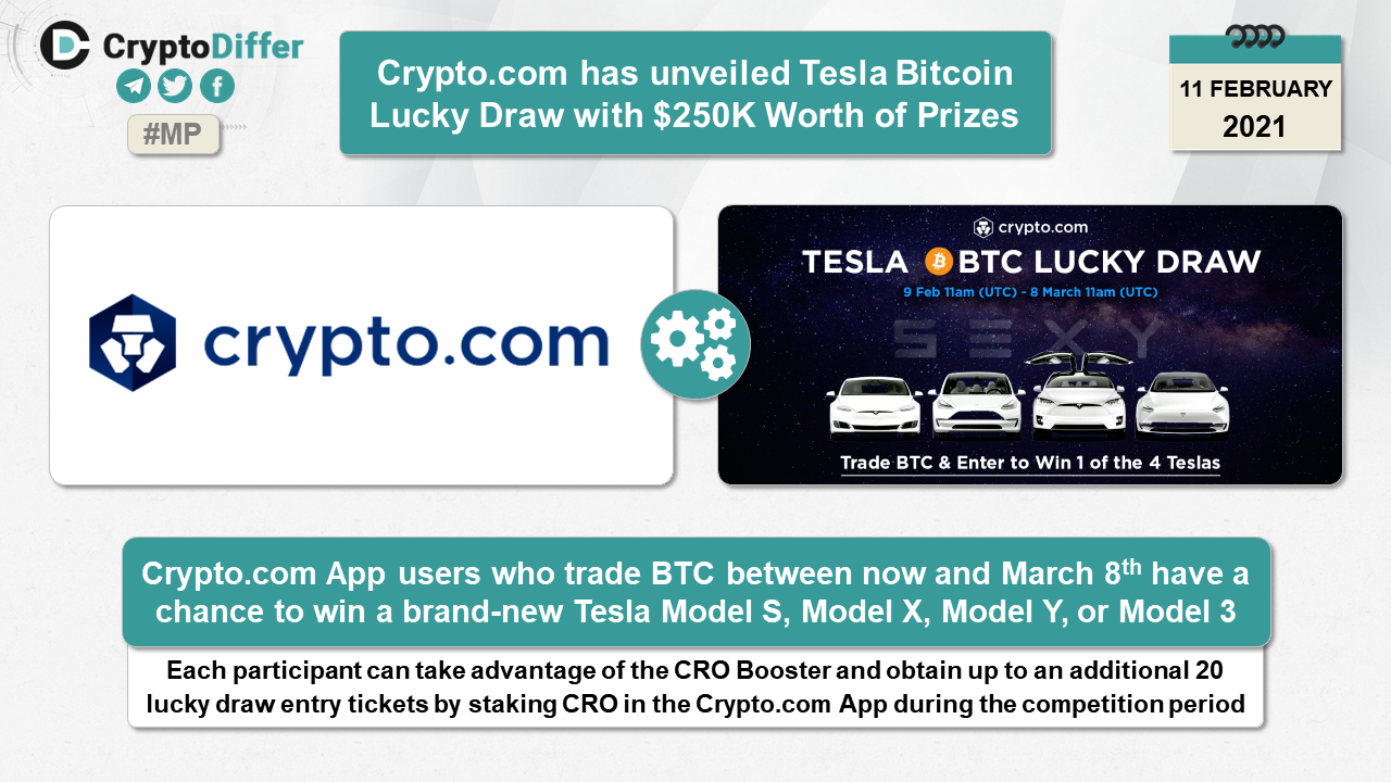 ββCrypto.com has unveiled Tesla Bitcoin Lucky Draw with $250K Worth of Prizes