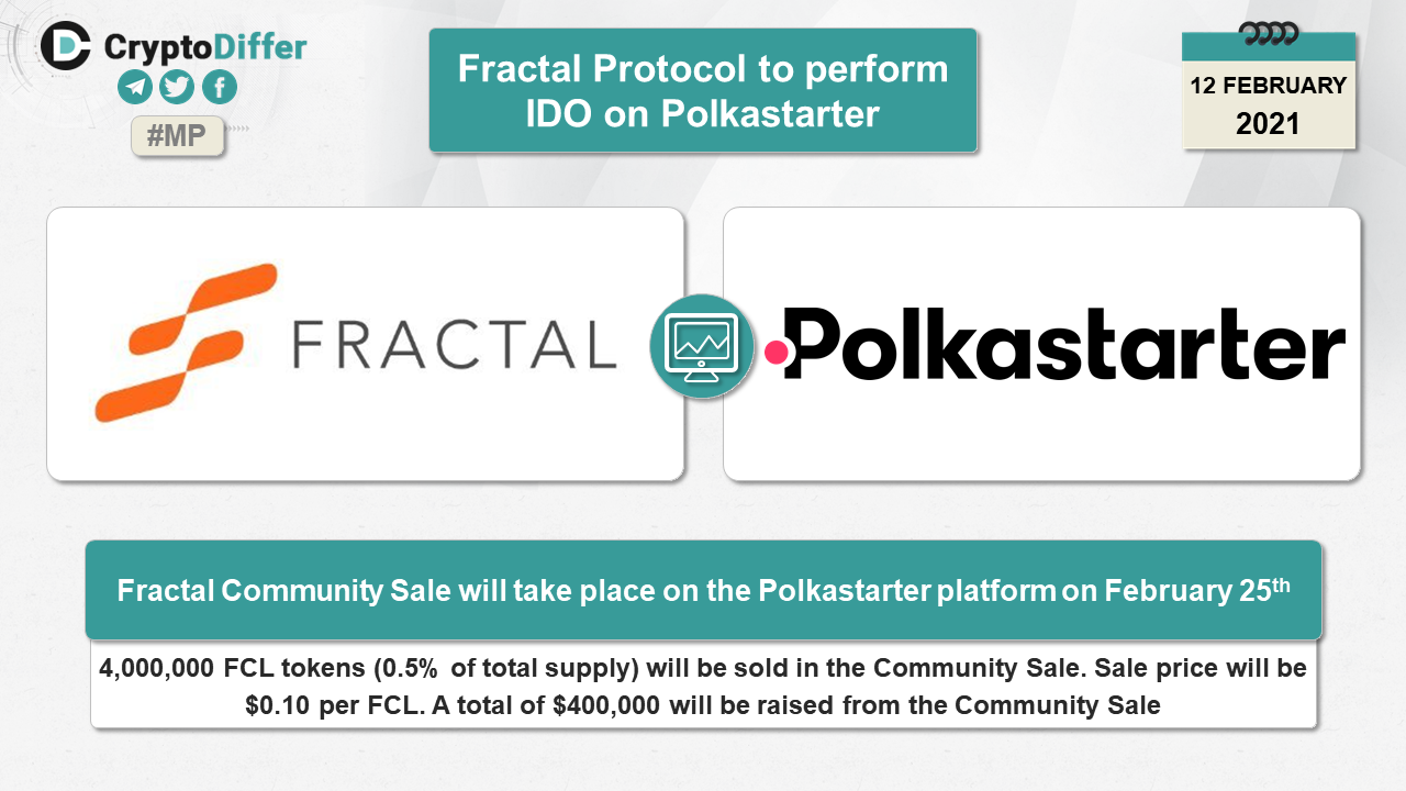 Fractal Community Sale will take place on the Polkastarter platform on February 25th. 4,000,000 FCL tokens (0.5% of total supply) will be sold in the Community Sale. Sale price will be $0.10 per FCL. A total of $400,000 will be raised from the Community Sale.