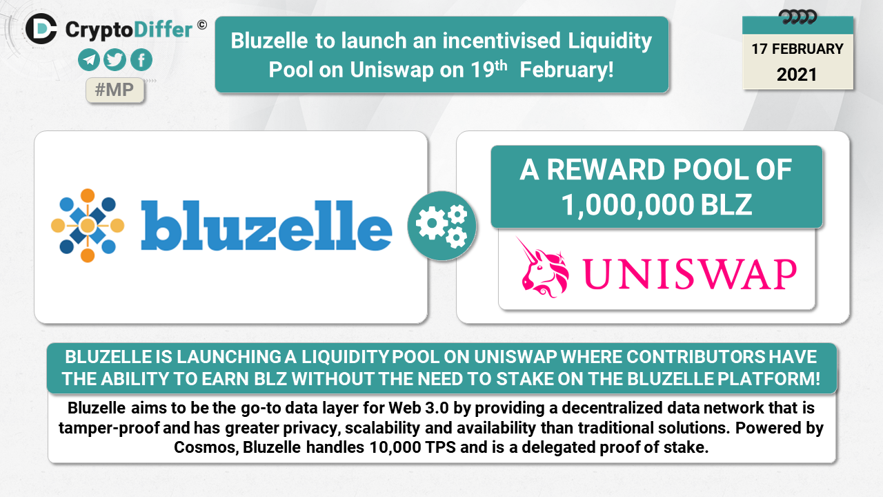 ββBluzelle to launch an incentivised Liquidity Pool on Uniswap on 19th February with a reward pool of 1,000,000 BLZ!