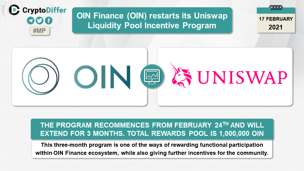 The program recommences from February 24th and will extend for 3 months. Total rewards pool is 1,000,000 OIN.
