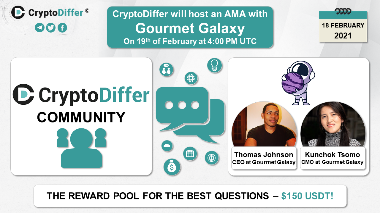 βββοΈDear community, CryptoDiffer will hold an AMA with Gourmet Galaxy on the 19th of February at 4:00 PM UTC in the CryptoDiffer Telegram Chat!