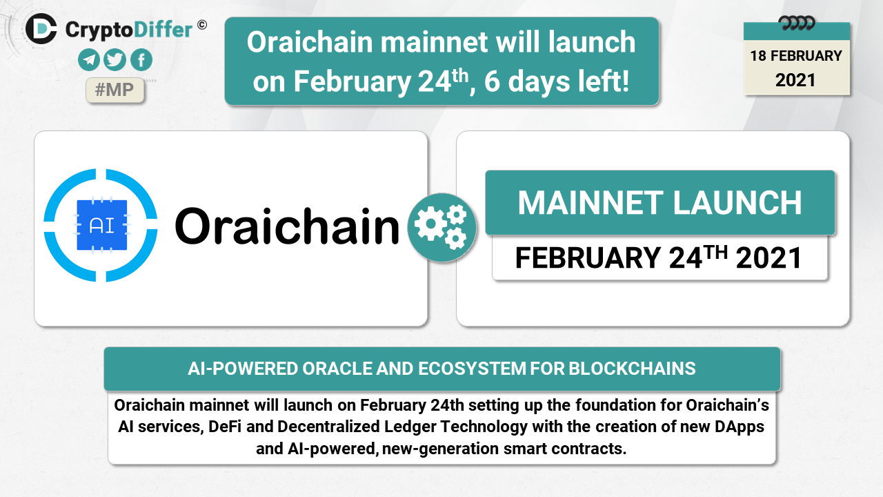 Oraichain mainnet will launch on February 24th setting up the foundation for Oraichainβs AI services, DeFi and Decentralized Ledger Technology with the creation of new DApps and AI-powered, new-generation smart contracts.