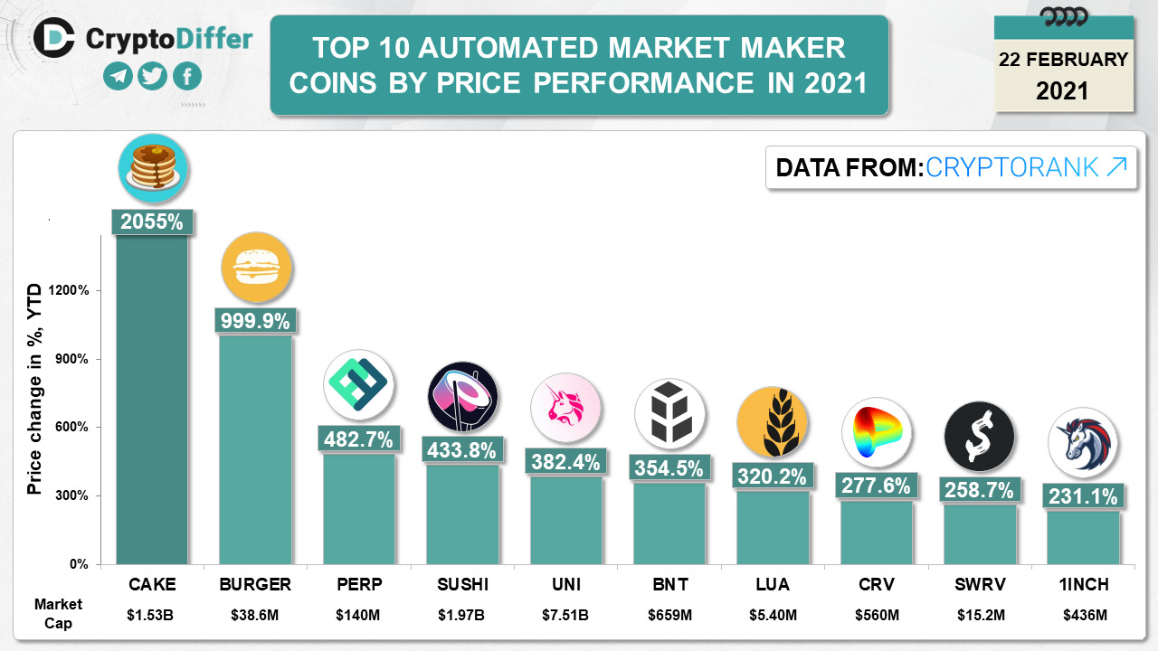 ββTOP 10 AUTOMATED MARKET MAKER COINS BY PRICE PERFORMANCE IN 2021