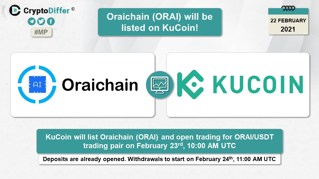 KuCoin will list Oraichain (ORAI) and open trading for ORAI/USDT trading pair on February 23rd, 10:00 AM UTC