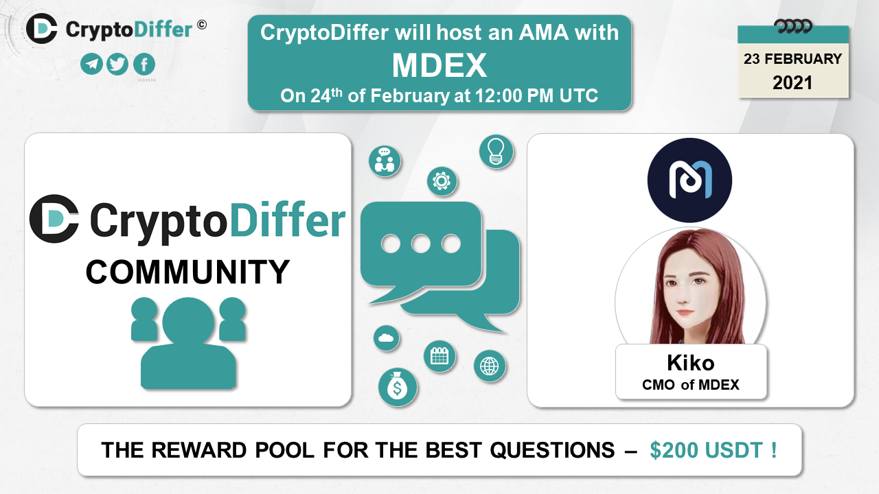 βββοΈDear community, CryptoDiffer will hold an AMA with MDEX on the 24th of February at 12:00 PM UTC in the CryptoDiffer Telegram Chat!