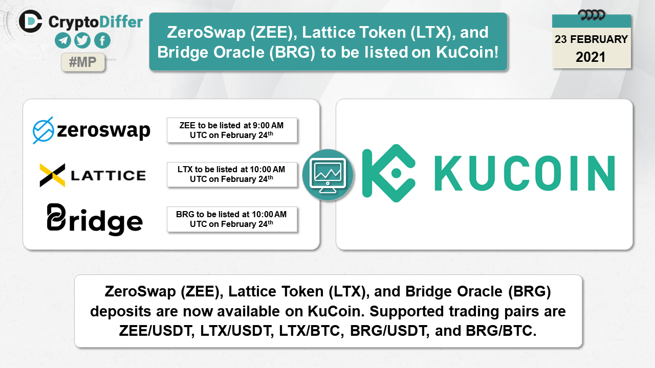 ββZeroSwap (ZEE), Lattice Token (LTX), and Bridge Oracle (BRG) to be listed on KuCoin!