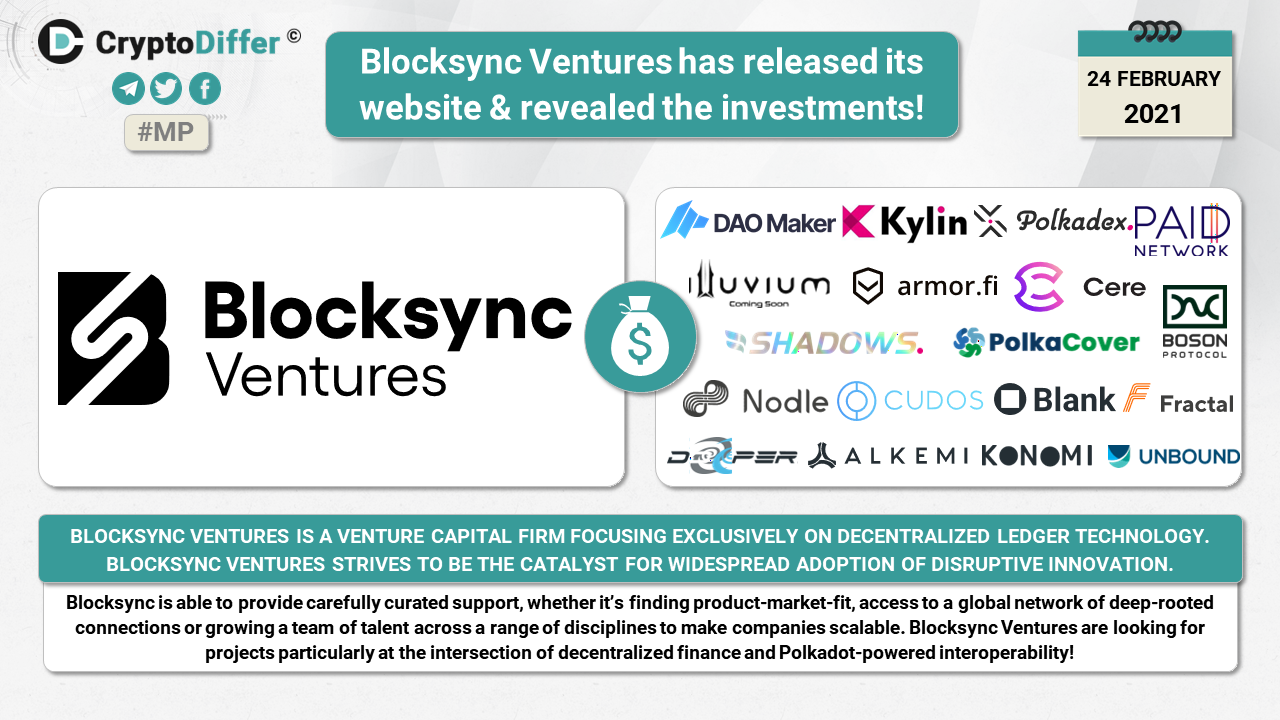 Blocksync Ventures is an investment firm focused on early-stage blockchain startups. Blocksync Ventures are looking for projects particularly at the intersection of decentralized finance and Polkadot-powered interoperability!