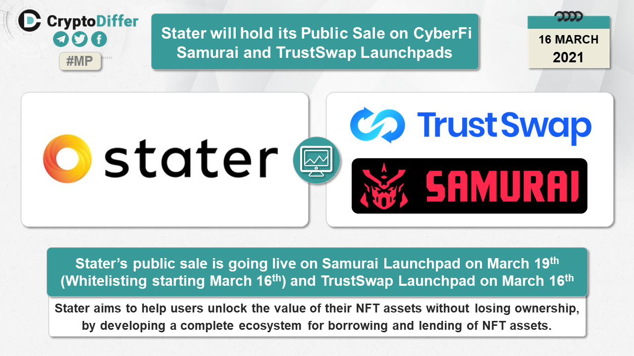 Staterβs public sale is going live on Samurai Launchpad on March 19th (Whitelisting starting March 16th) and TrustSwap Launchpad on March 16th.