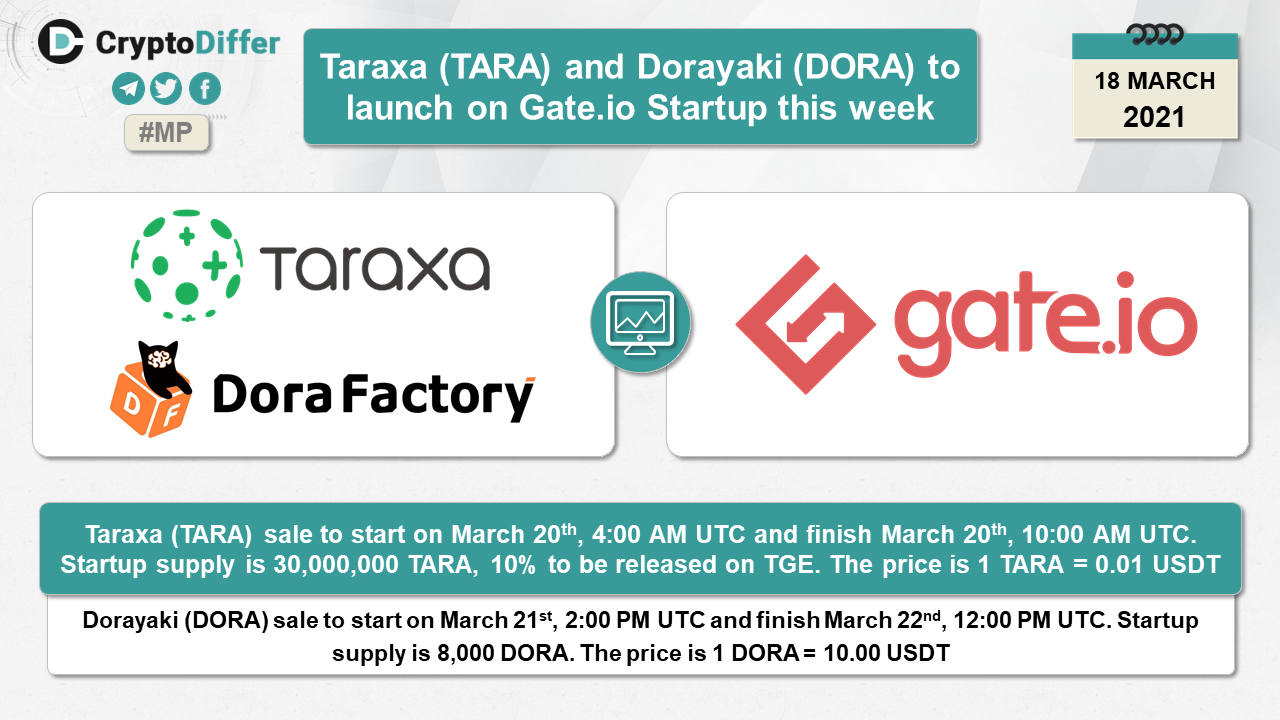 ββTaraxa (TARA) and Dorayaki (DORA) to launch on Gate.io Startup this week