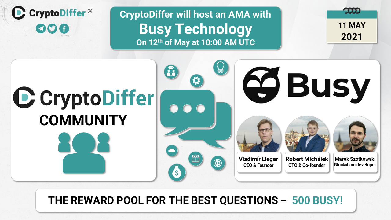 βββοΈDear community, CryptoDiffer will hold an AMA with Busy Technology on the 12th of May at 10:00 AM UTC in the CryptoDiffer Telegram Chat!