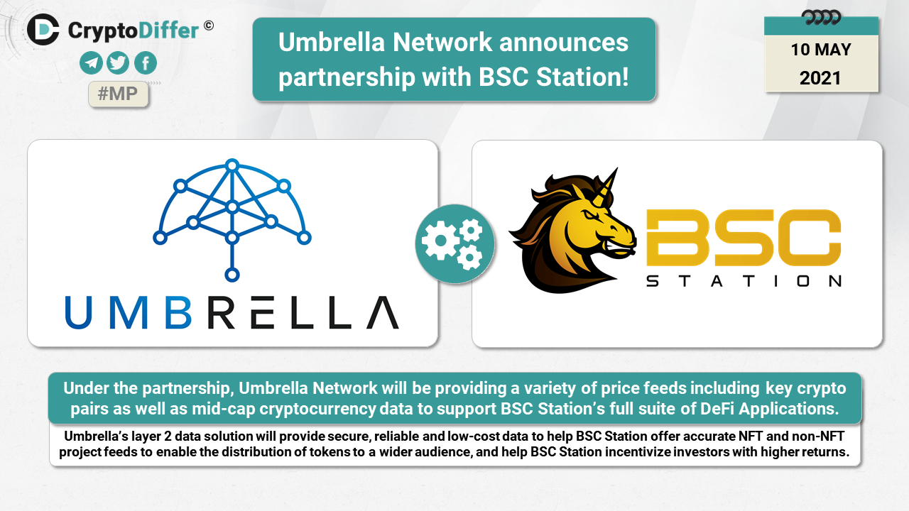Under the partnership, Umbrella Network will be providing a variety of price feeds including key crypto pairs as well as mid-cap cryptocurrency data to support BSC Stationβs full suite of DeFi Applications.