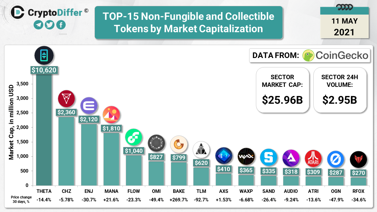 ββTOP-15 Non-Fungible and Collectible Tokens by Market Capitalization