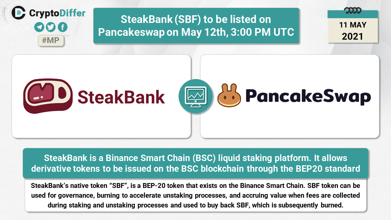 ββSteakBank (SBF) to be listed on Pancakeswap on May 12th, 3:00 PM UTC