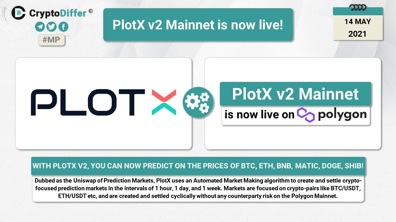 PlotX v2 Mainnet has been launched with: 6 markets (BTC, ETH, BNB, MATIC, DOGE, SHIB), Gasless transactions, Cross-chain swaps between L1 & L2, Guaranteed liquidity in every prediction market, Blazing-fast UX, and Easier Web3 connections