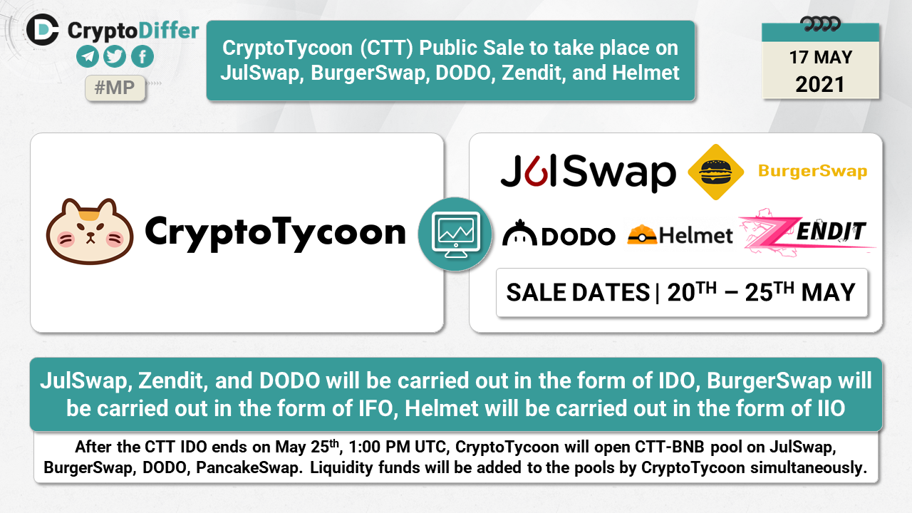 ββCryptoTycoon (CTT) Public Sale to take place on JulSwap, BurgerSwap, DODO, Zendit, and Helmet