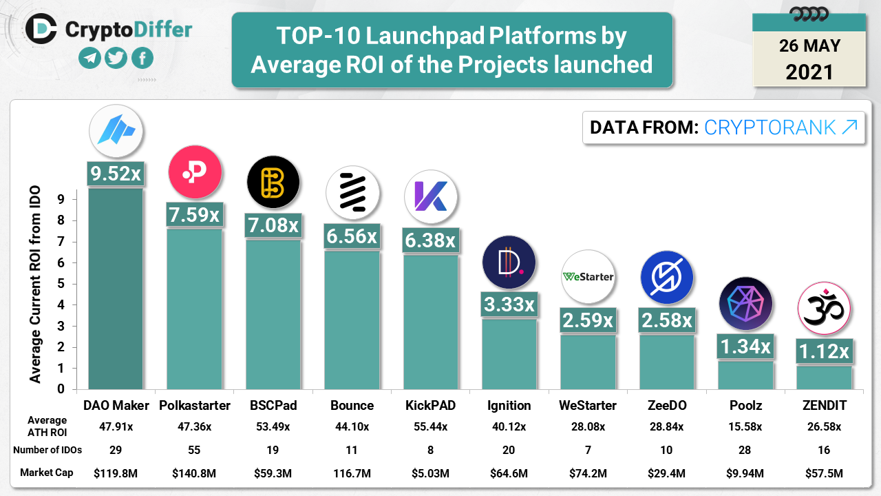 ββTOP-10 Launchpad Platforms by Average ROI of the Projects launched