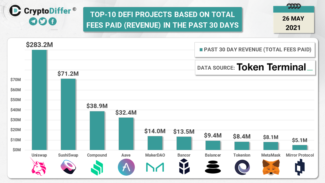 ββTOP-10 DEFI PROJECTS BASED ON TOTAL FEES PAID (REVENUE) IN THE PAST 30 DAYS