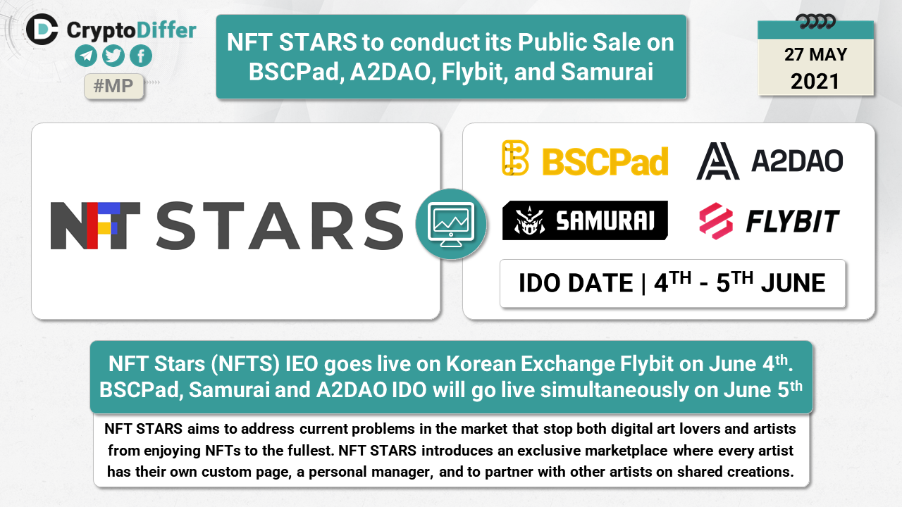 NFT Stars (NFTS) IEO goes live on Korean Exchange Flybit on June 4th. BSCPad, Samurai and A2DAO IDO will go live simultaneously on June 5th.