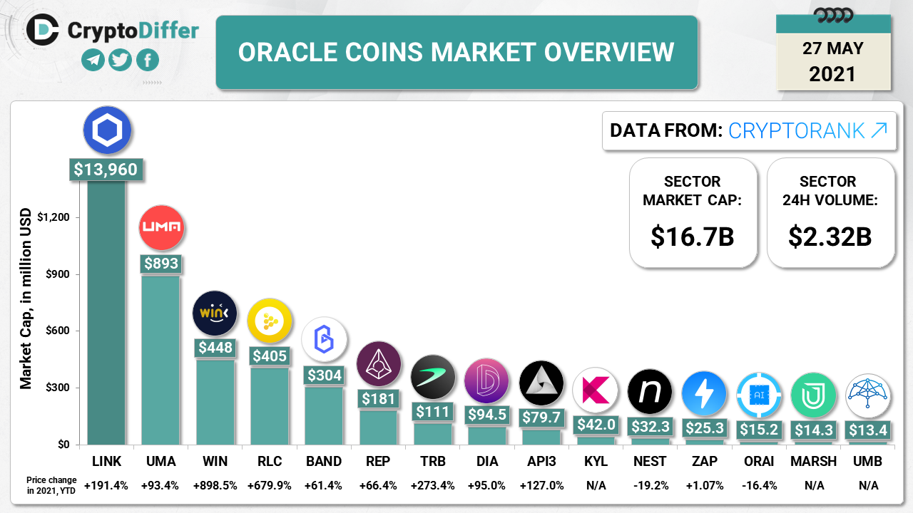 Chainlink is the biggest project among Oracle Coins and it keeps attracting the attention of global crypto investors, still, competitors do not sleep and keep building. Some investors are interested to find out about other representatives of the Oracles Coins niche, that is why we decided to prepare a comparison of the Market Caps and price change of selected Oracle Projects.