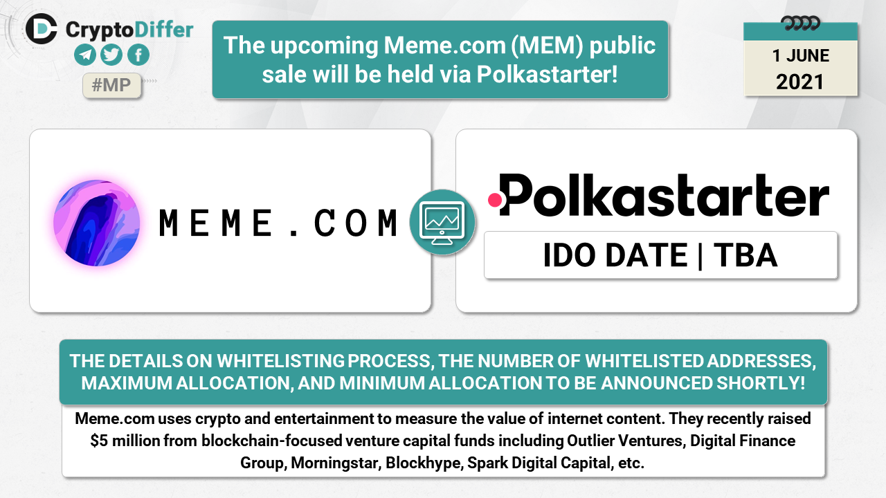 ββThe upcoming Meme.com (MEM) public sale will be held via Polkastarter!