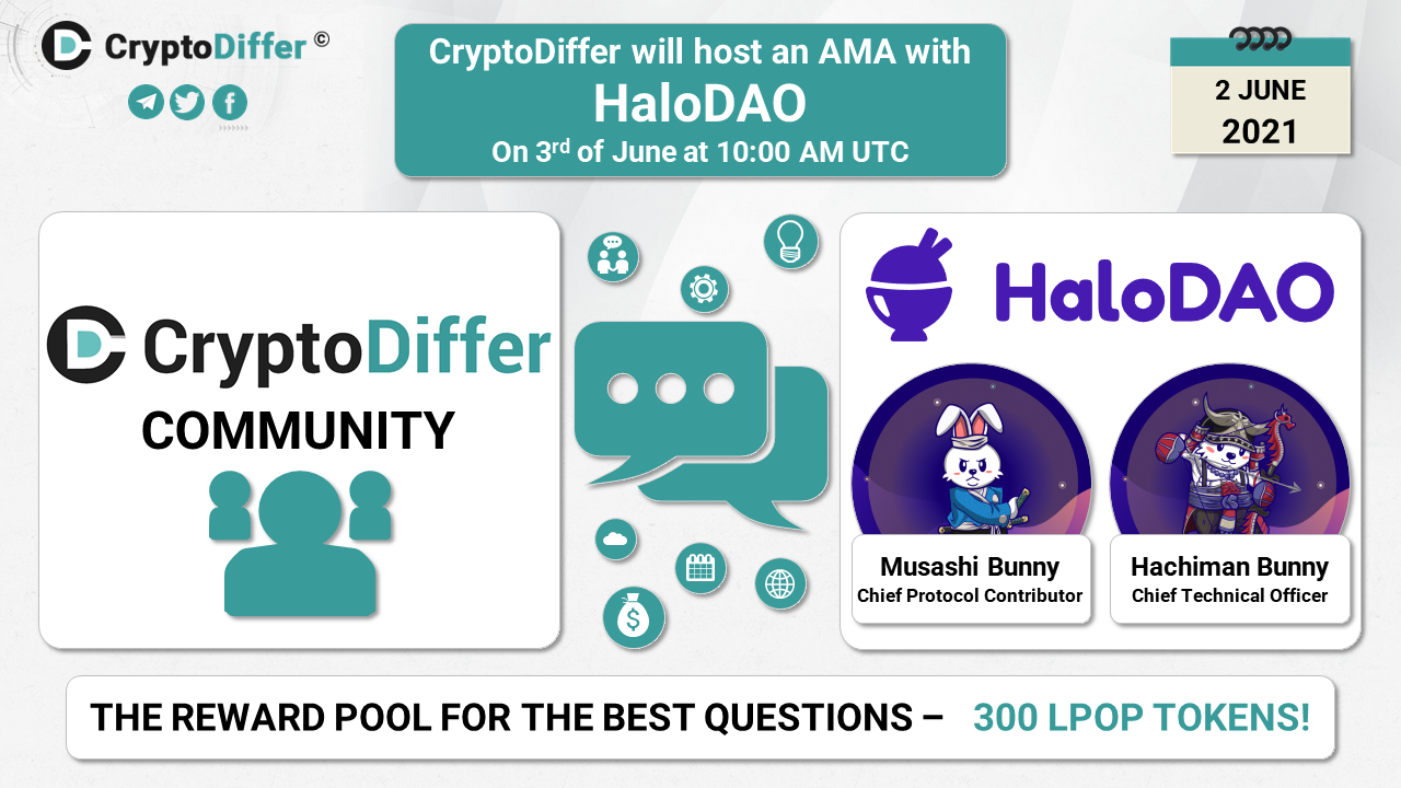 βββοΈDear community, CryptoDiffer will hold an AMA with HaloDAO on the 3rd of June at 10:00 AM UTC in the CryptoDiffer Telegram Chat!