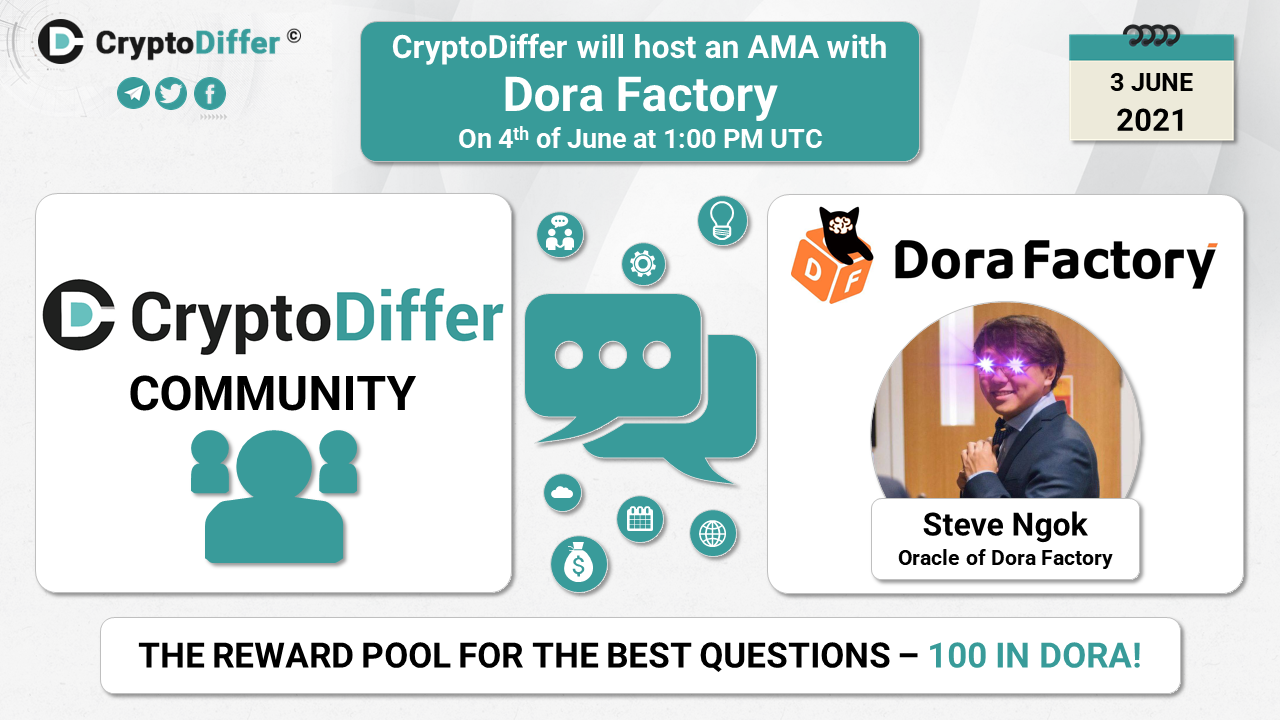 βββοΈDear community, CryptoDiffer will hold an AMA with Dora Factory on the 4th of June at 1:00 PM UTC in the CryptoDiffer Telegram Chat!