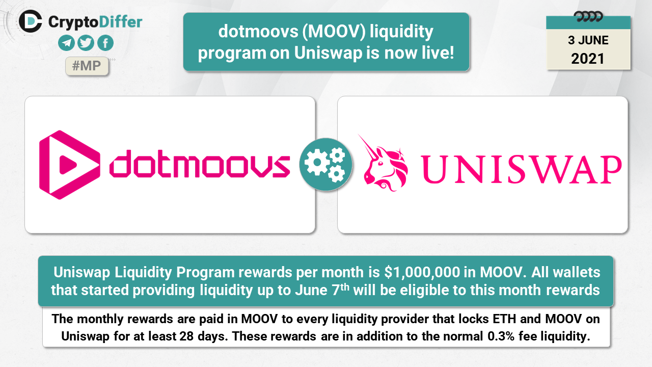 Uniswap Liquidity Program rewards per month is $1,000,000 in MOOV. All wallets that started providing liquidity up to June 7th will be eligible to this month rewards.