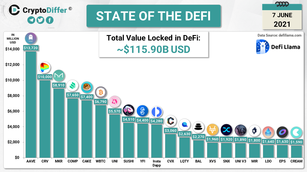 Total Value Locked in DeFi: ~$115.90B USD