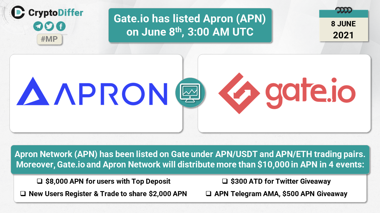 Apron Network (APN) has been listed on Gate under APN/USDT and APN/ETH trading pairs. Moreover, Gate and Apron Network will distribute more than $10,000 in APN in 4 events.