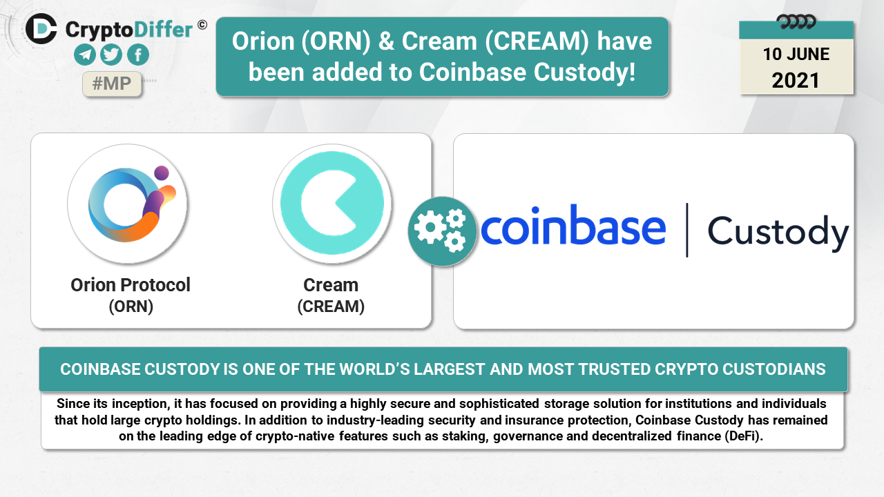 ββOrion (ORN) & Cream (CREAM) have been added to Coinbase Custody!