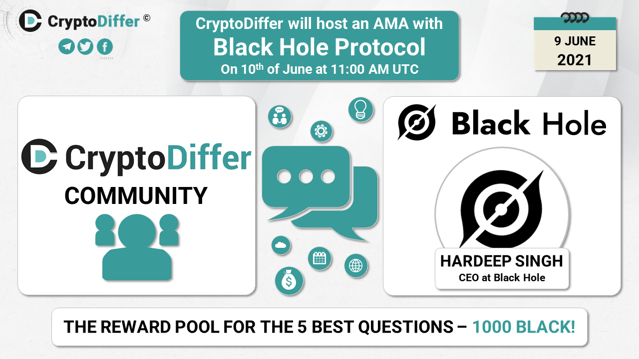 βββοΈDear community, CryptoDiffer will hold an AMA with Black Hole Protocol on the 10th of June at 11:00 AM UTC in the CryptoDiffer Telegram Chat!