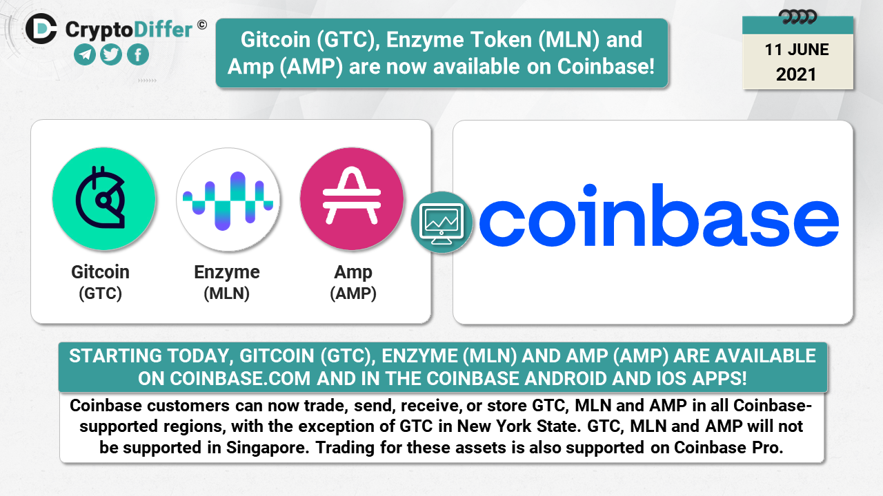 ββGitcoin (GTC), Enzyme Token (MLN) and Amp (AMP) are now available on Coinbase!