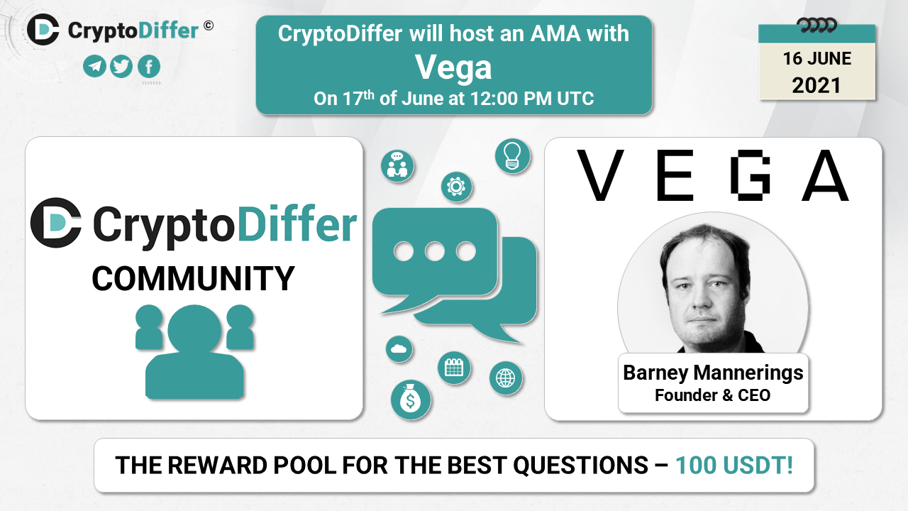 ❗️Dear community, CryptoDiffer will hold an AMA with Vega on the 17th of June at 12:00 PM UTC in the CryptoDiffer Telegram Chat!