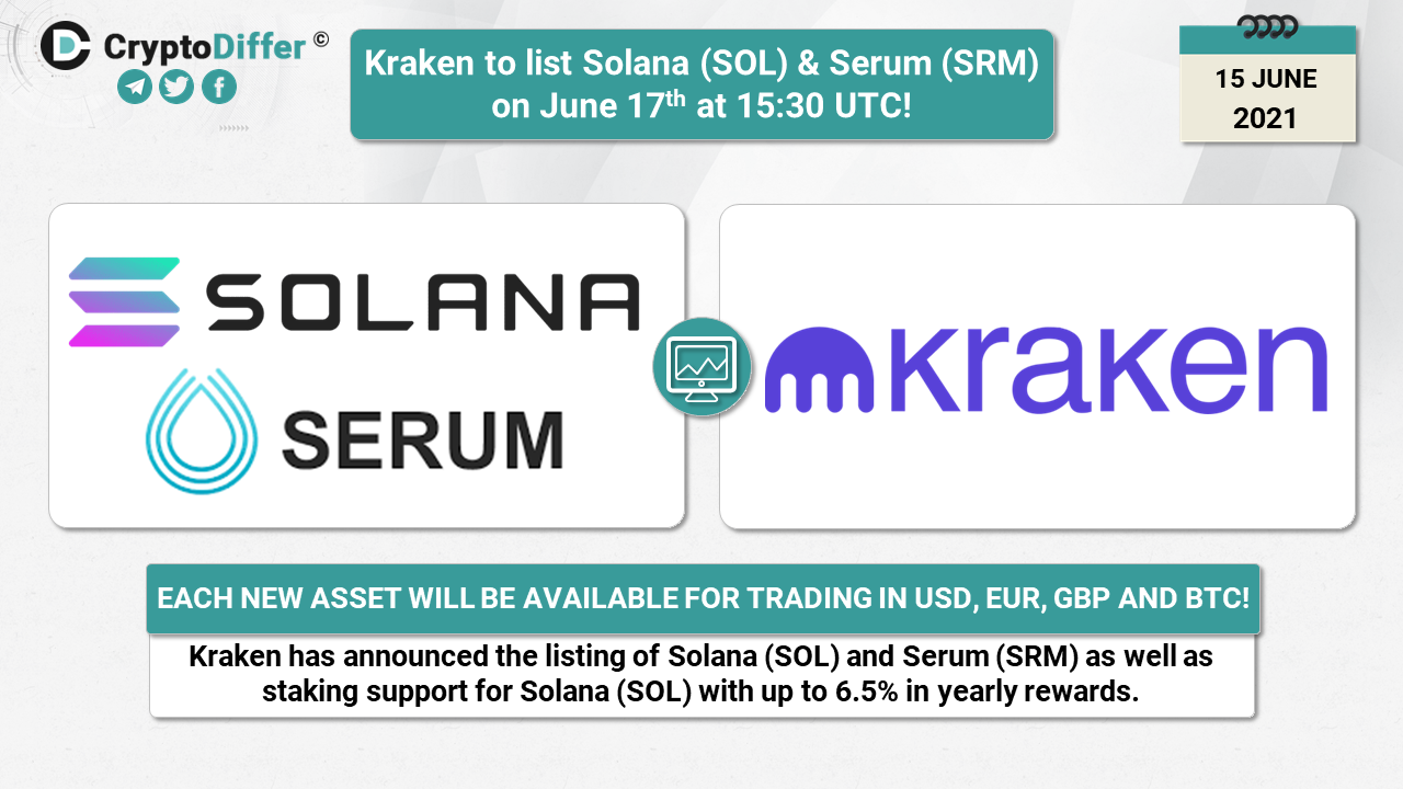Kraken to list Solana (SOL) & Serum (SRM) on June 17th at 15:30 UTC!