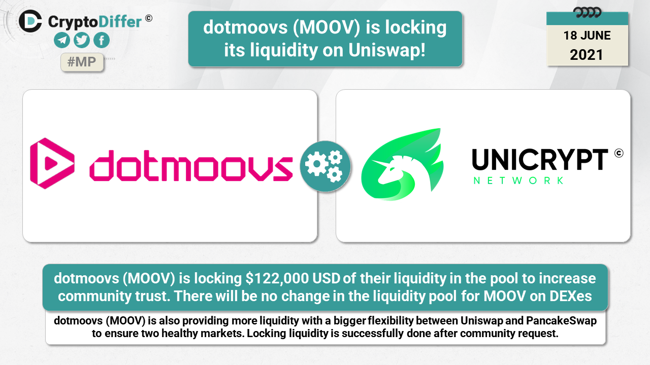 dotmoovs (MOOV) is locking $122,000 USD of their liquidity in the pool to increase community trust. There will be no change in the liquidity pool for MOOV on DEXes.