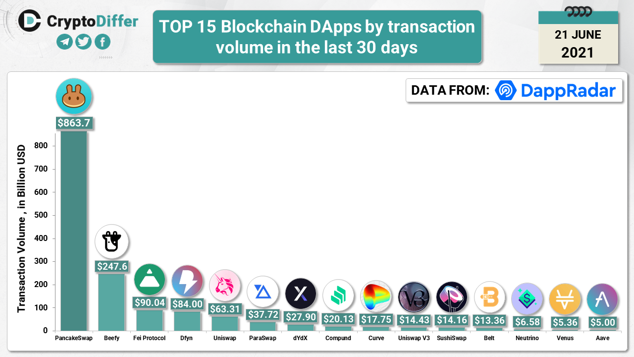 ββTOP 15 Blockchain DApps by transaction volume in the last 30 days