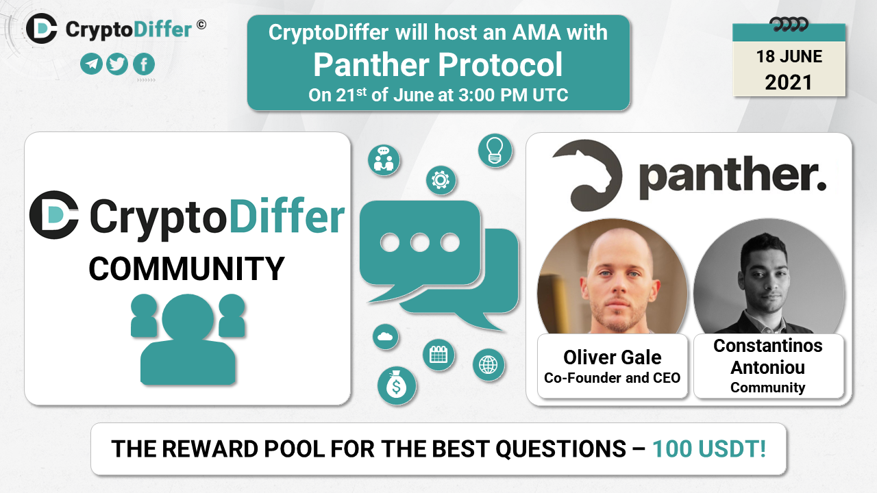 βββοΈDear community, CryptoDiffer will hold an AMA with Panther Protocol on the 21st of June at 3:00 PM UTC in the CryptoDiffer Telegram Chat!