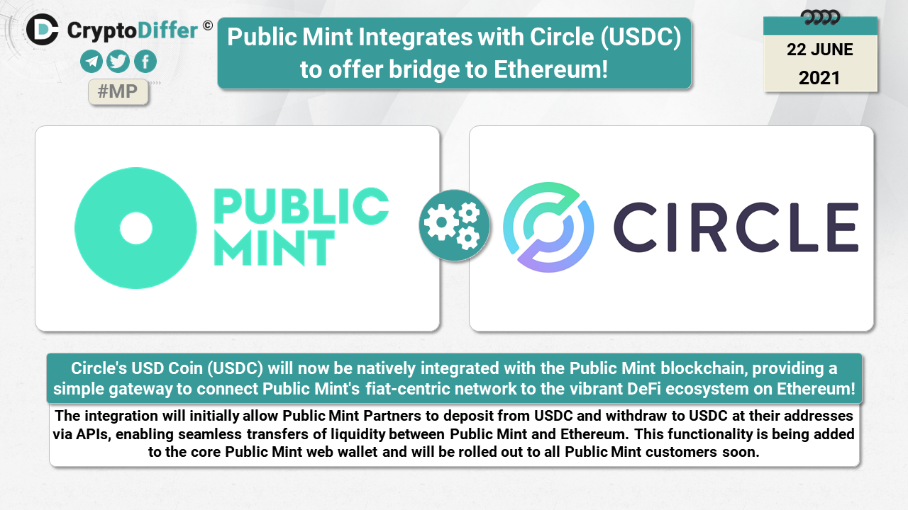 The integration will initially allow Public Mint Partners to deposit from USDC and withdraw to USDC at their addresses via APIs, enabling seamless transfers of liquidity between Public Mint and Ethereum. This functionality is being added to the core Public Mint web wallet and will be rolled out to all Public Mint customers soon.