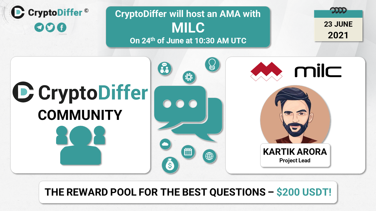 ❗️Dear community, CryptoDiffer will hold an AMA with MILC on the 24th of June at 10:30 AM UTC in the CryptoDiffer Telegram Chat!