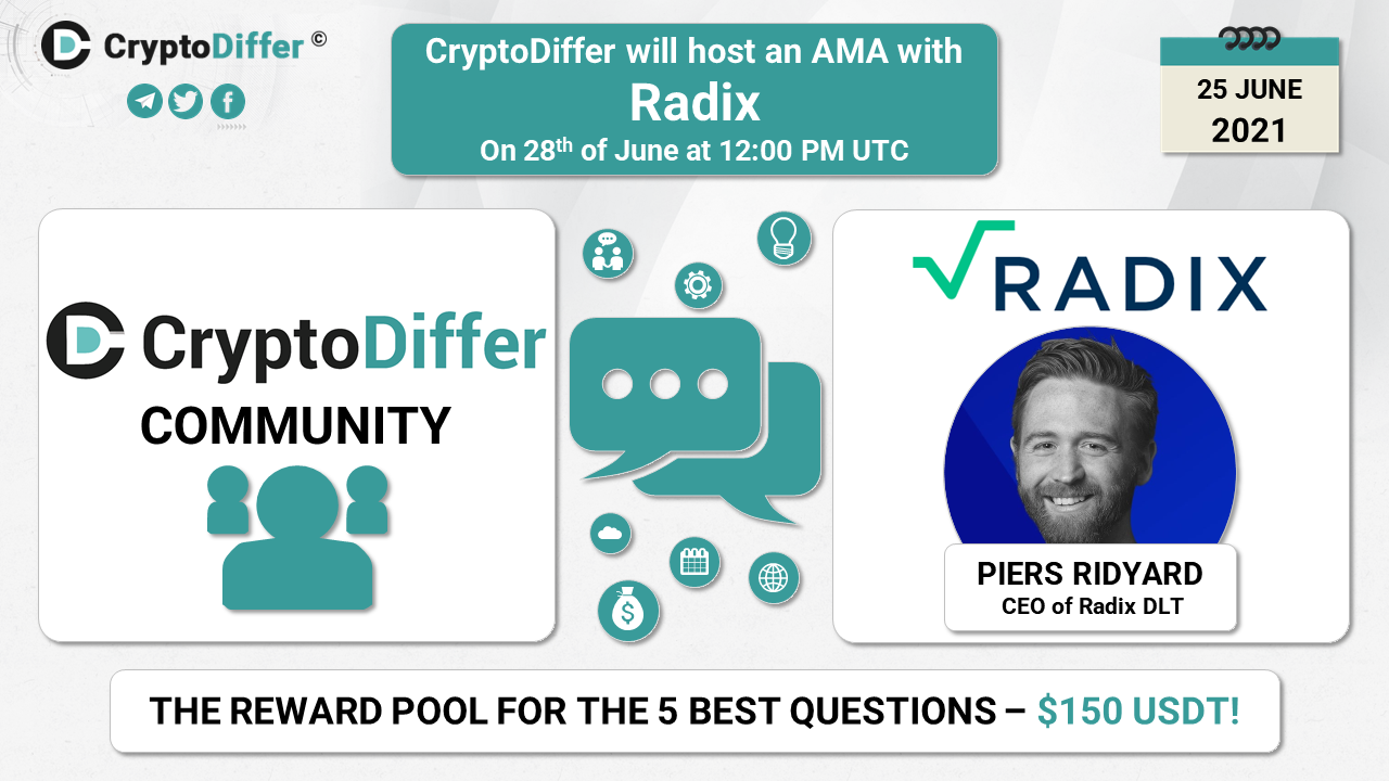 βββοΈDear community, CryptoDiffer will hold an AMA with Radix on the 28th of June at 12:00 PM UTC in the CryptoDiffer Telegram Chat!